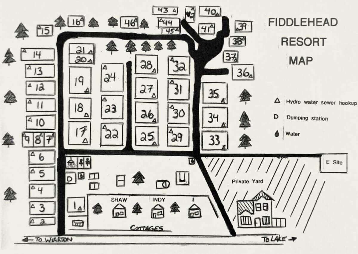Fiddlehead Camp features seasonal trailer sites from roughly May 1st (Depending on weather/snow melt) through to Thanksgiving weekend. All trailer sites can accommodate 30 foot trailers, have 30 Amp service, and include water and hydro.